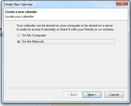 Click Next then setup a name and color for your calendar, click next, then click finish.
