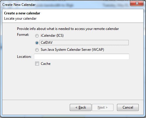 After you have that installed you will need to login to google calendar. If you only want to be able to see your calendar in thunderbird but not modify it then you can go right ahead and use the iCal option, otherwise you will need to use the CalDav functionality that google calendar provides but it's a bit more hidden.